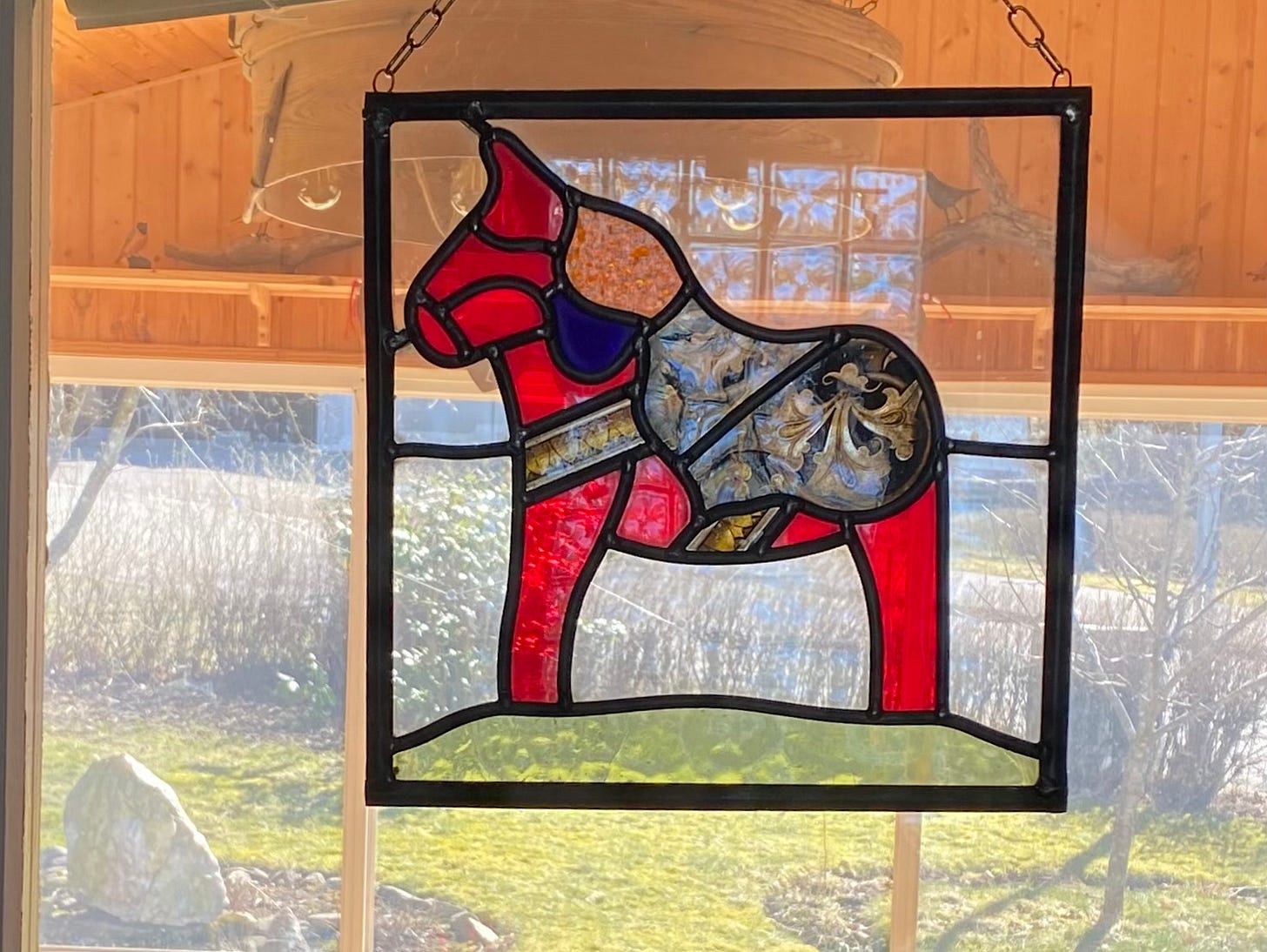 The Dala horse hangs at my window